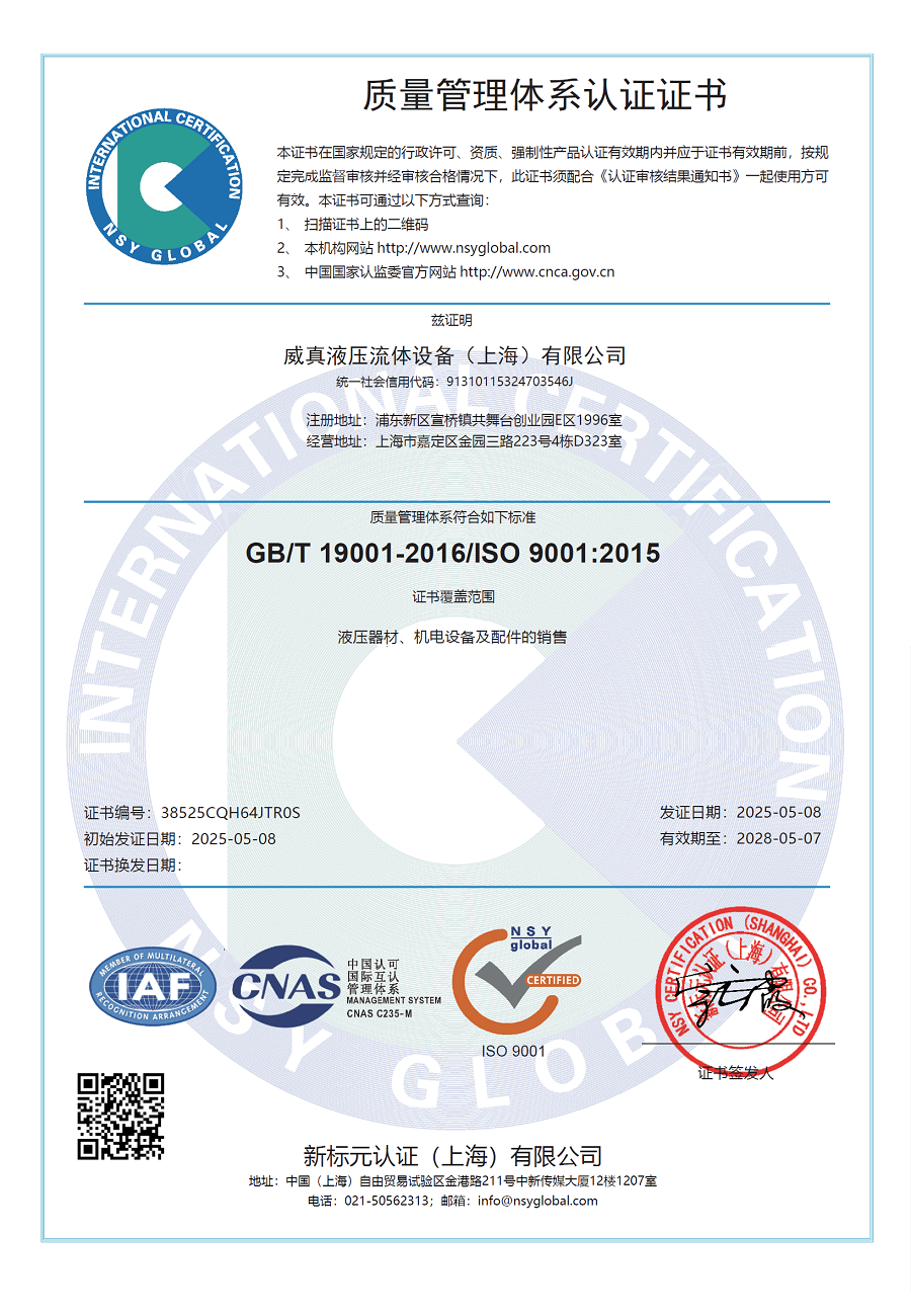 威真液壓流體設(shè)備(上海)有限公司是專業(yè)生產(chǎn)和經(jīng)營各種液壓膠管總成、液壓接頭、不銹鋼流體連接件、精密鋼管、球閥、法蘭及其它液壓附件的企業(yè),公司自創(chuàng)立以來一直致力為客戶提供完整的液壓、流體解決方案、努力打造“華東最大流體連接件超市”;始終堅持“客戶至上、技術(shù)爭先、求真務(wù)實、揚我國威”的企業(yè)宗旨。同時我們還是RYCO(澳大利亞萊科)品牌液壓軟管的授權(quán)代理商。我公司總部位于國際金融中心—上海,多年的液壓管件研發(fā)與生產(chǎn)經(jīng)驗、專業(yè)的技術(shù)與服務(wù)隊伍為威真液壓打造行業(yè)一流企業(yè)提供了有力保障。目前我們已經(jīng)通過ISO 9001:2015/ GB/T 19001-2016 質(zhì)量體系認(rèn)證,而我們的產(chǎn)品全部按照DIN2353、ISO8434、SAEJ514等國際質(zhì)量體系標(biāo)準(zhǔn)進行設(shè)計、生產(chǎn)、檢測。我們重視產(chǎn)品質(zhì)量,所以威真液壓今天已經(jīng)成為業(yè)界成長飛快的公司,盡管如此,我們?nèi)砸砸涣鞯钠焚|(zhì)和良好的交貨能力為客戶提供細(xì)致入微的服務(wù)。
